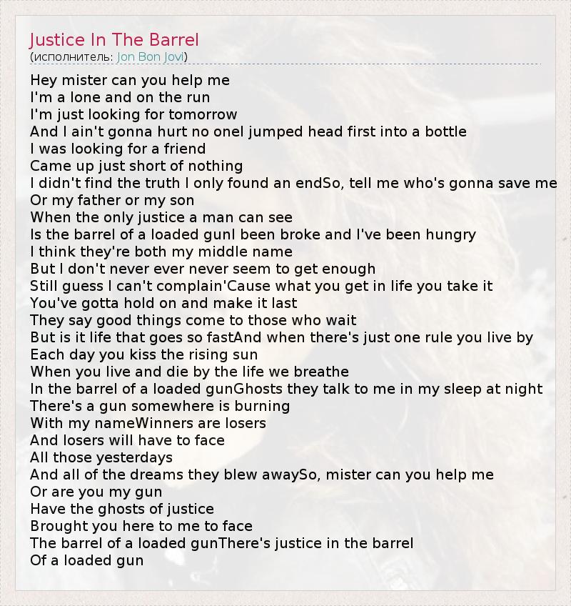 А как ты думаешь, о чем песня "Justice In The Barrel" ?
