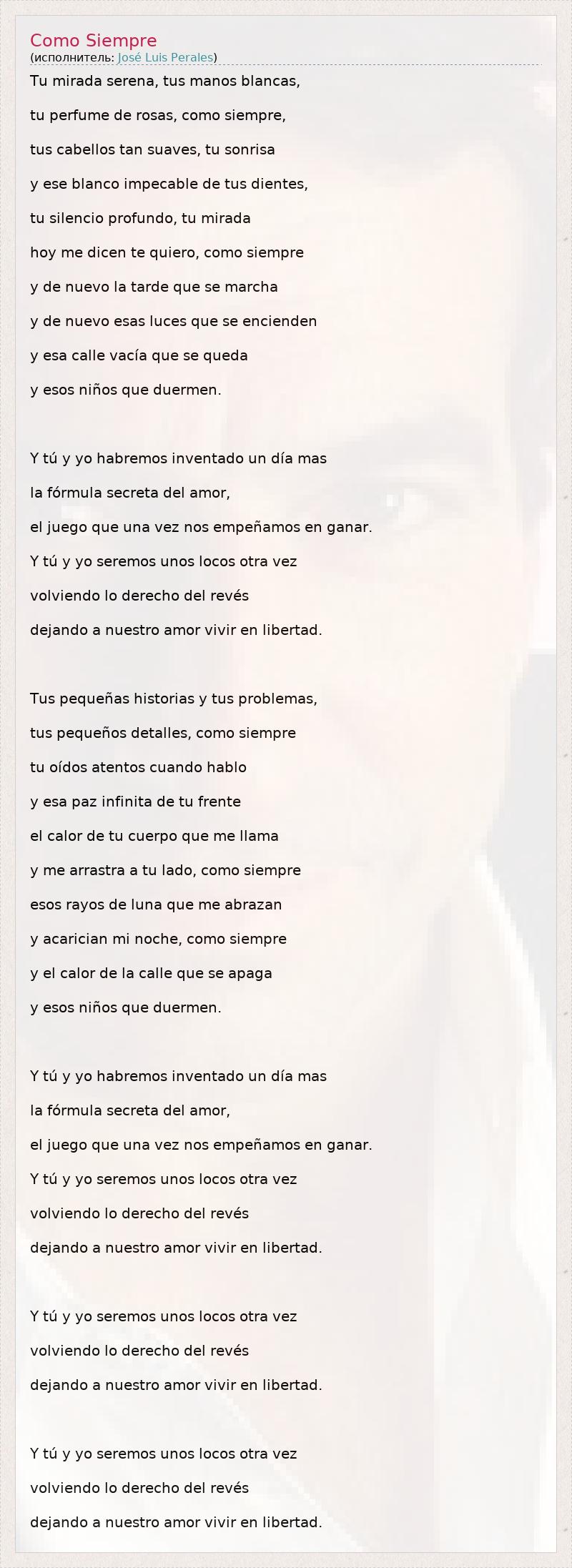 А как ты думаешь, о чем песня "Como Siempre" ?