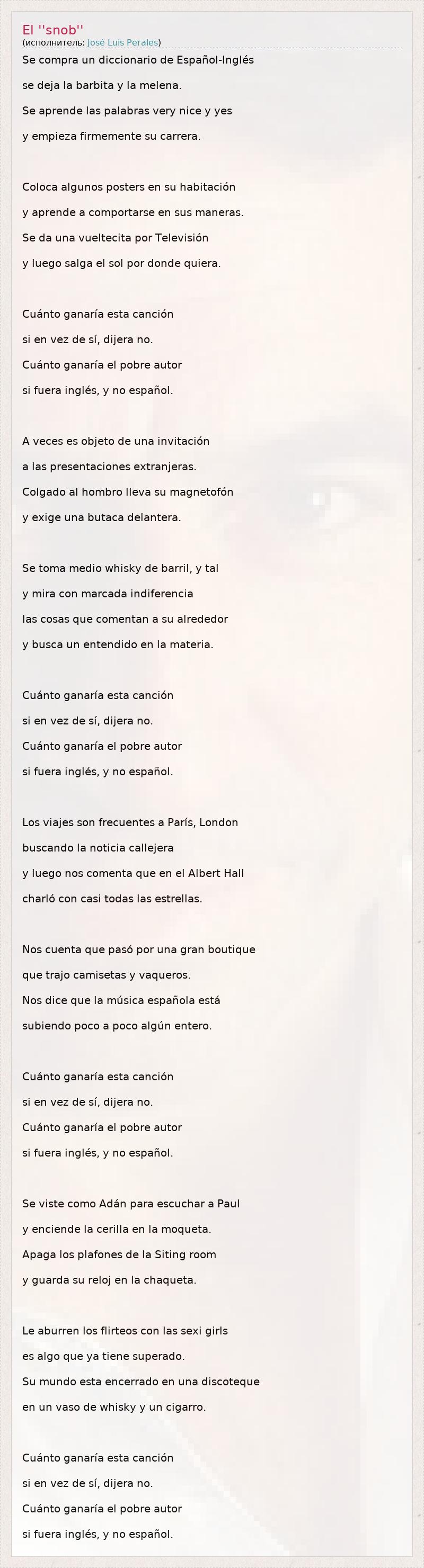 А как ты думаешь, о чем песня "El ''snob''" ?