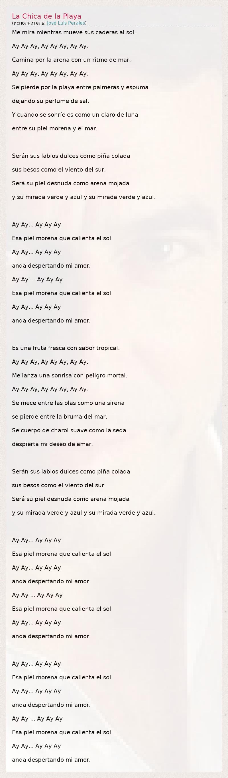 А как ты думаешь, о чем песня "La Chica de la Playa" ?