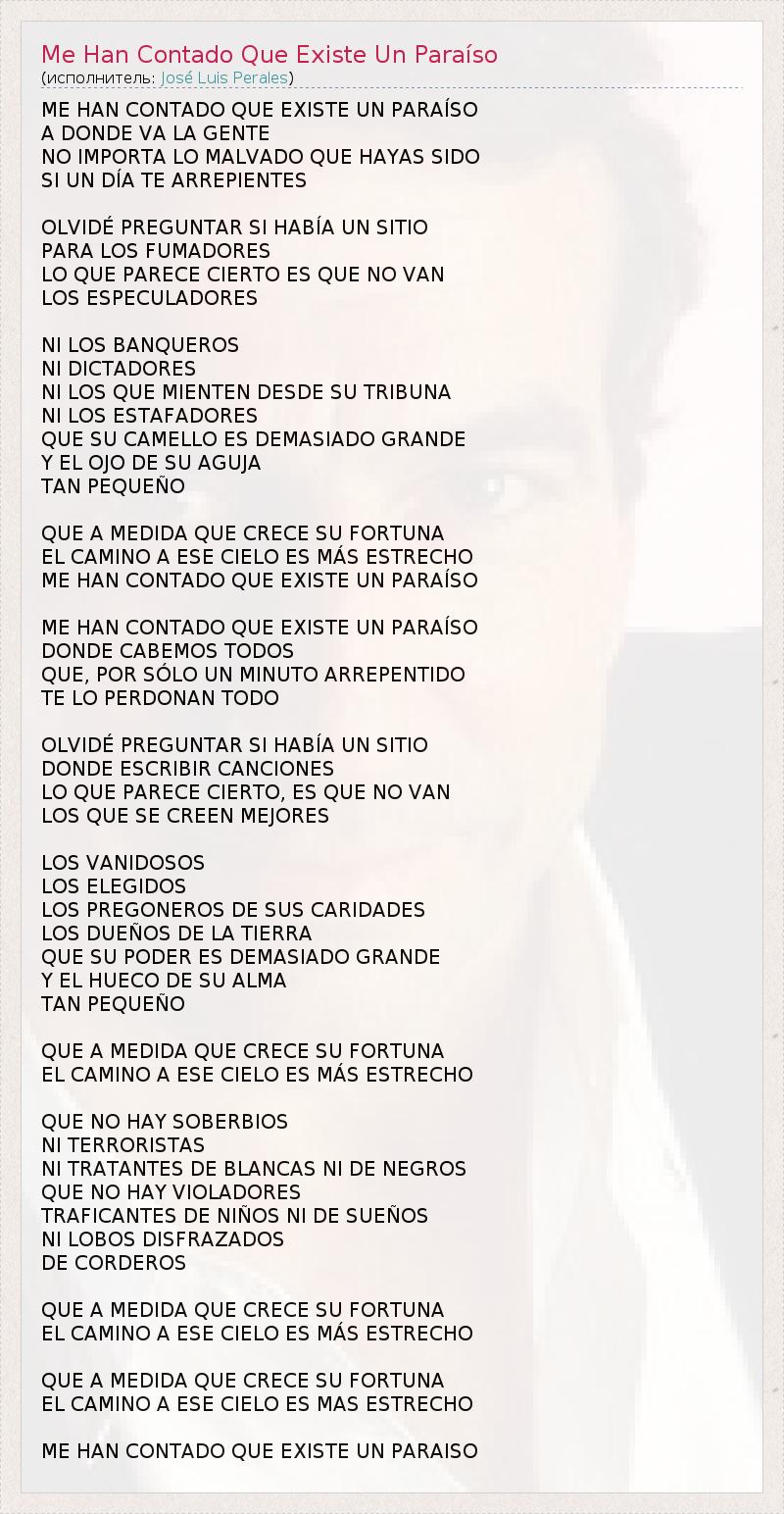 ГлавнаяИсполнителиJosé Luis PeralesMe Han Contado Que Existe Un Paraíso