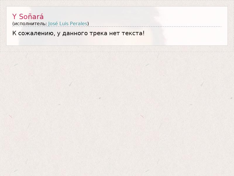 Это интересно:José Luis Perales José Luis Perales Birth name José Luis Perales Morillas Born 28 January 1945 (1945-01-28) (age 66)Castejón, Cuenca, Spain Genres BaladaRomantic music Occupations Musician, Songwriter Instruments Guitar, Vocals Years active 1972-present Labels Hispavox, Sony Music / BMG, Columbia Records Website http://www.joseluisperales.net/ (Spanish) José Luis Perales (born January 28, 1945 in Castejón, Cuenca Province) is a Spanish singer-songwriter and composer who is very popular in Spain and Latin America. He has performed some of his extensive work... продолжение