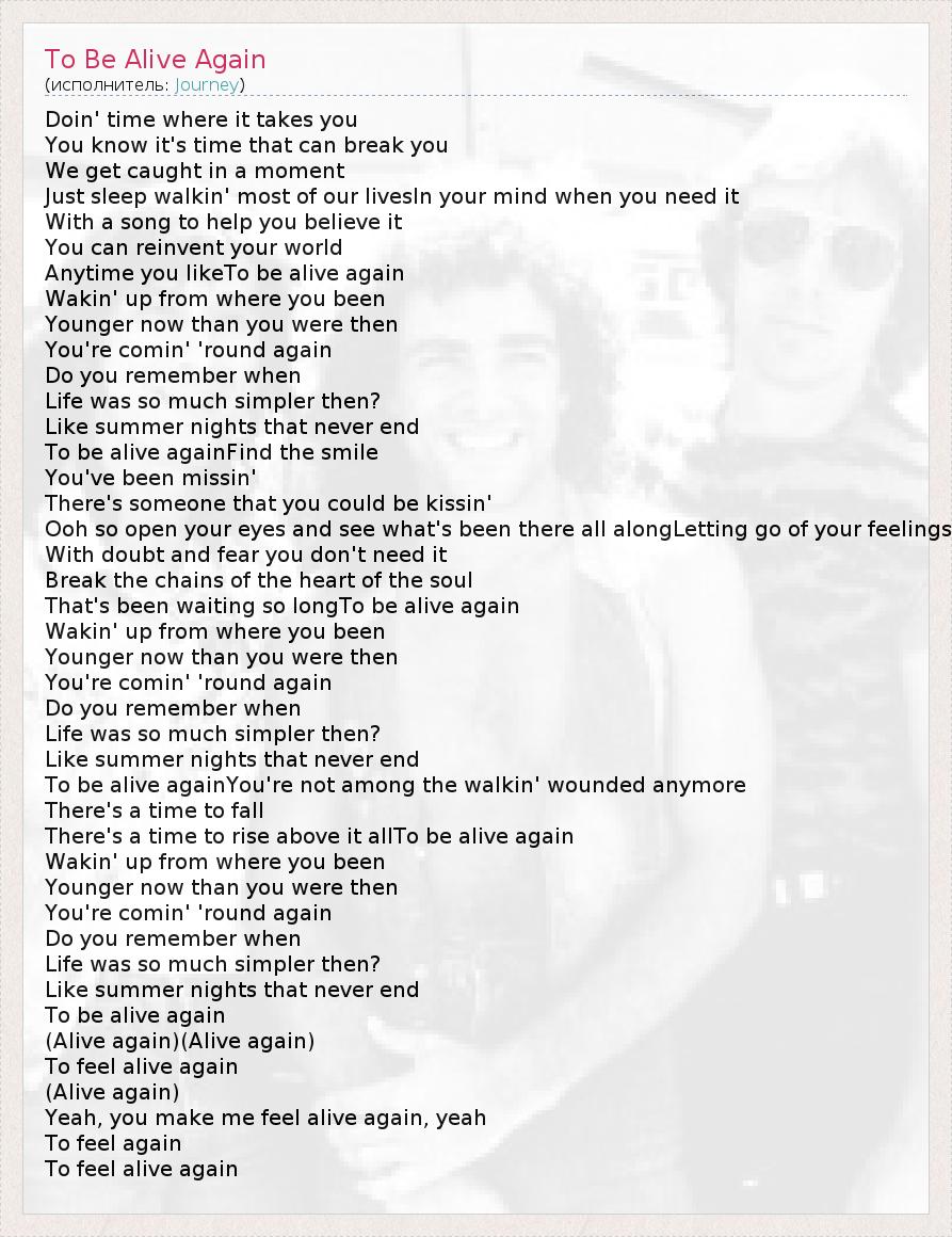 А как ты думаешь, о чем песня "To Be Alive Again" ?