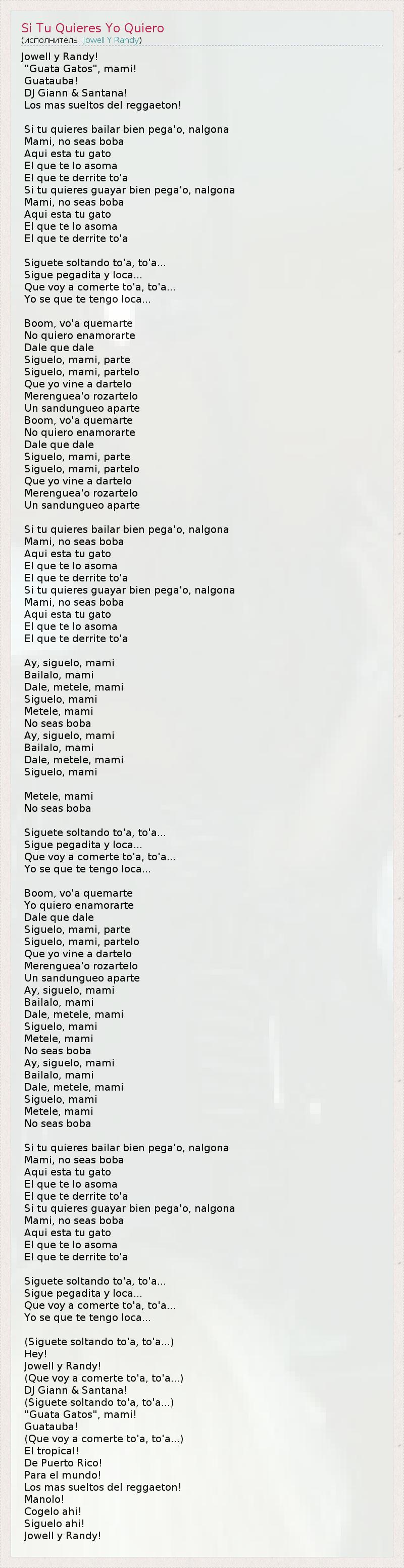 А как ты думаешь, о чем песня "Si Tu Quieres Yo Quiero" ?