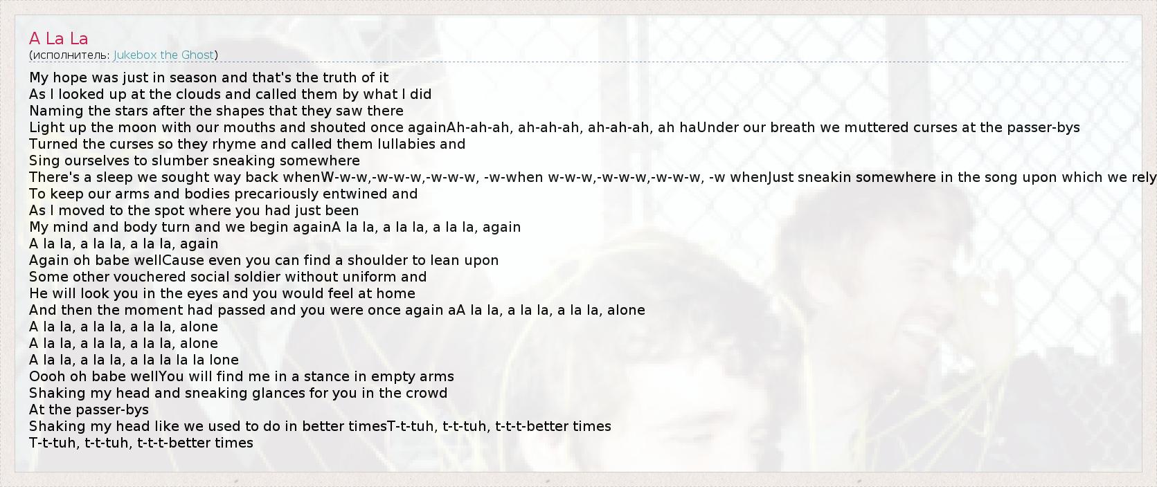 And then the moment had passed and you were once again aA la la, a la la, a la la, alone