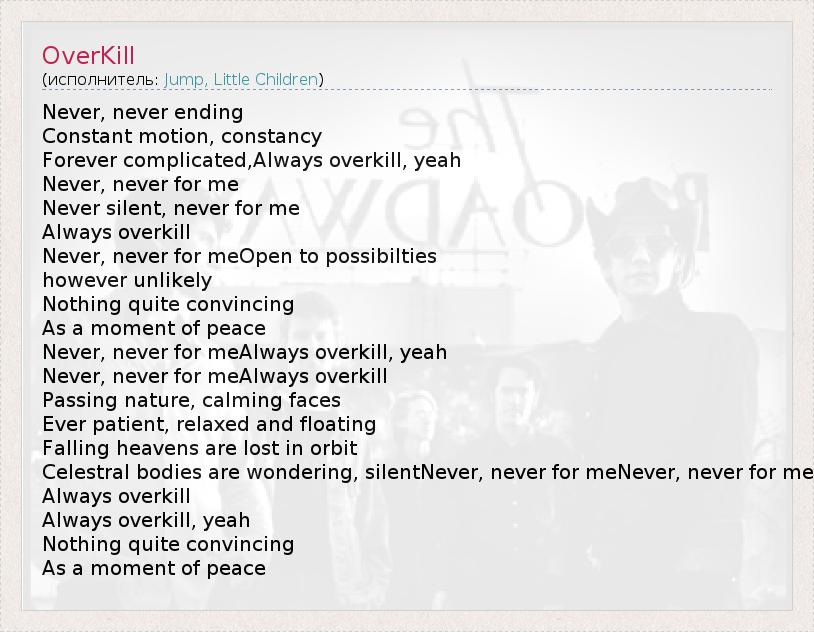 А как ты думаешь, о чем песня "OverKill" ?