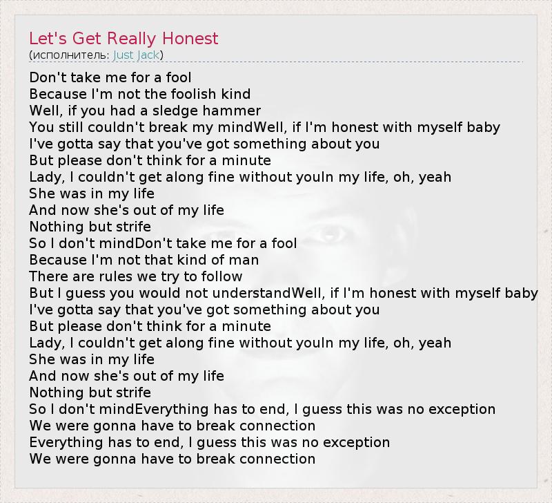 А как ты думаешь, о чем песня "Let's Get Really Honest" ?