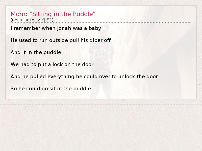 А как ты думаешь, о чем песня "Mom: "Sitting in the Puddle"" ?