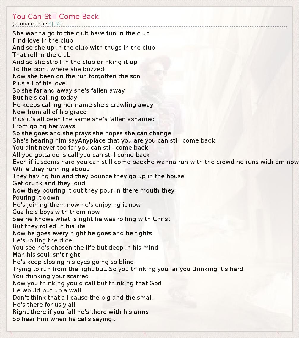 ГлавнаяИсполнителиKJ-52You Can Still Come Back