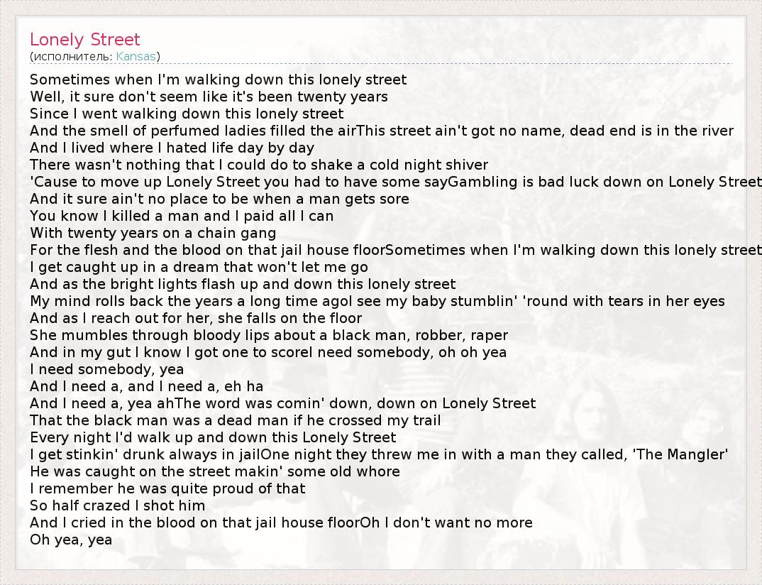 А как ты думаешь, о чем песня "Lonely Street" ?