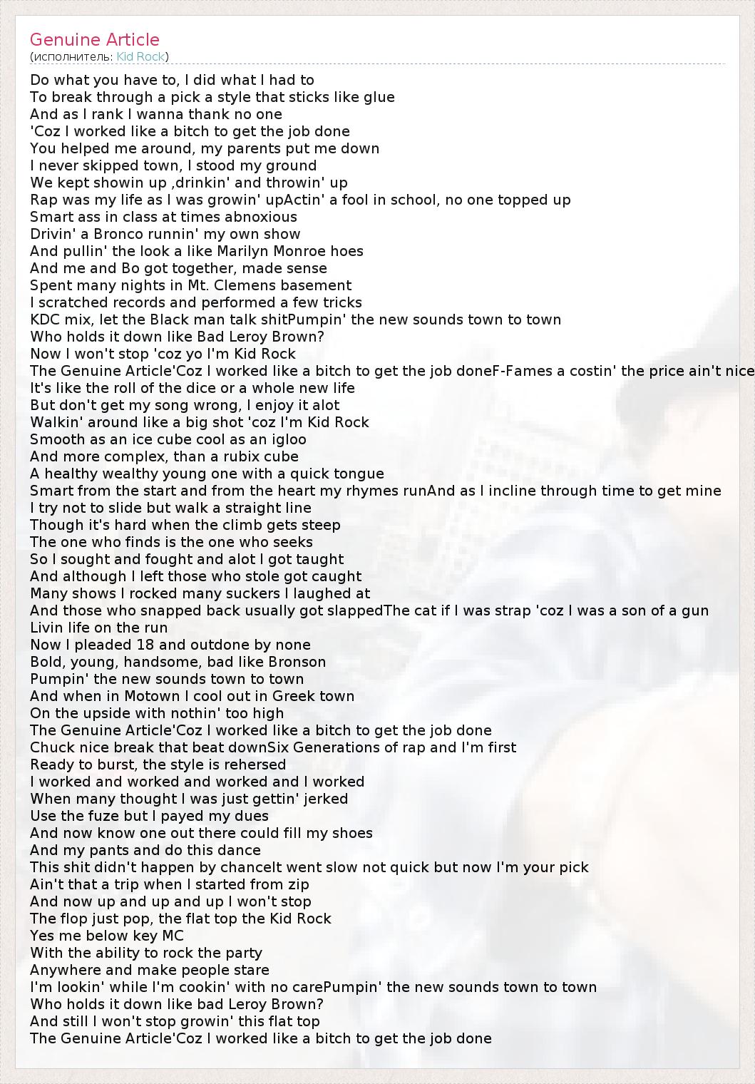 The Genuine Article'Coz I worked like a bitch to get the job doneF-Fames a costin' the price ain't nice