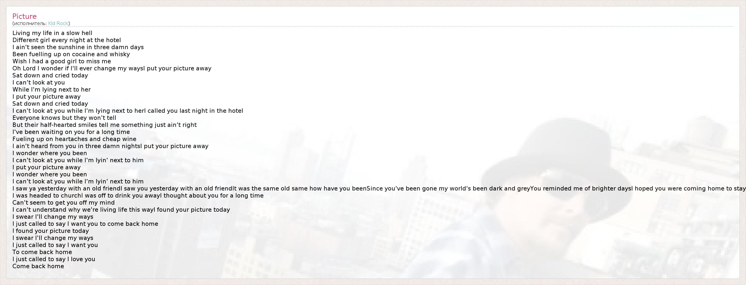 Это интересно:Роберт Джеймс Ричи, выступающий под сценическим псевдонимом Kid Rock, родился 17 января 1971 года в городе Ромео, штат Мичиган. Свое первое демо он записал в 1988 году, будучи под влиянием работы группы Beastie Boys "Licensed To Ill". В конце 80-х Kid Rock подписал контракт с фирмой Jive Records, которая в 1990 году выпустила его дебютный альбом "Sandwiches for Breakfast". Песня "Yodelin' in the Valley" с этого... продолжение