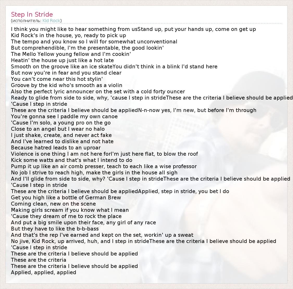 No jive, Kid Rock, up arrived, huh, and I step in strideThese are the criteria I believe should be applied