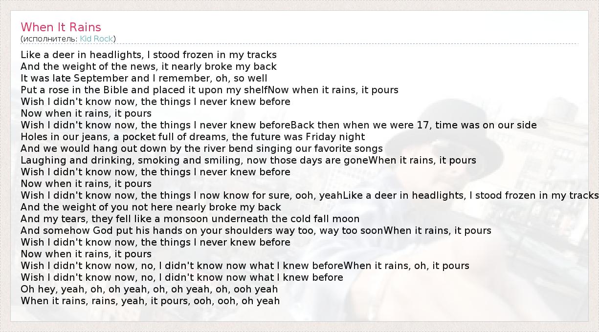 When it rains, rains, yeah, it pours, ooh, ooh, oh yeah