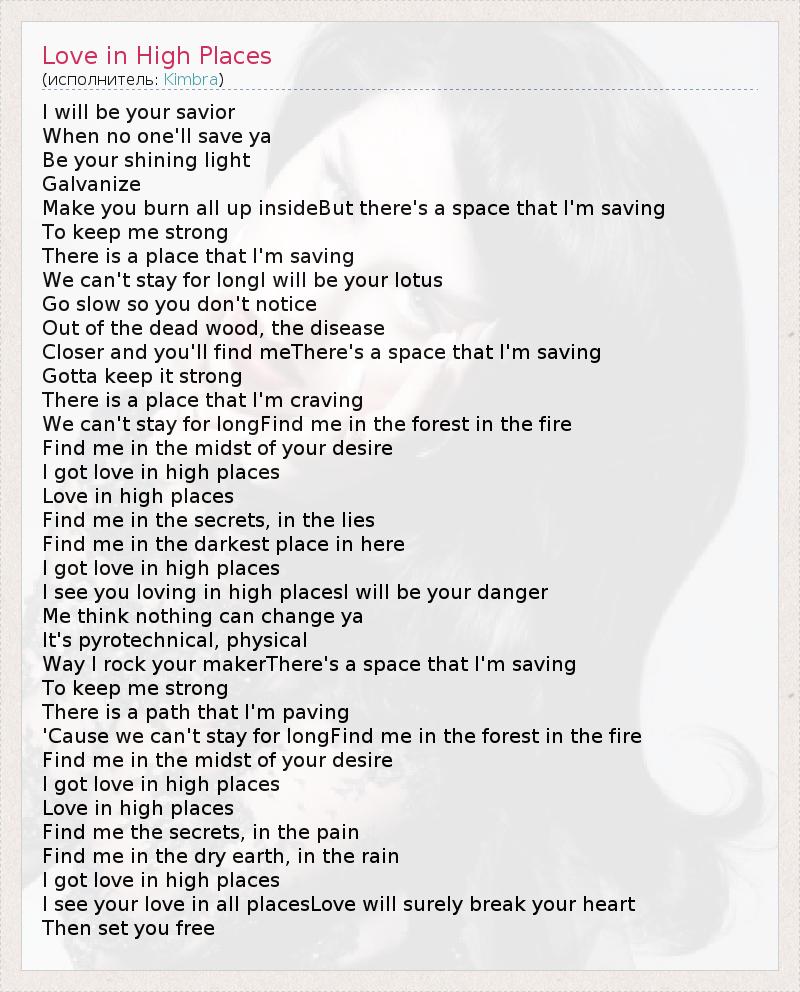 А как ты думаешь, о чем песня "Love in High Places" ?