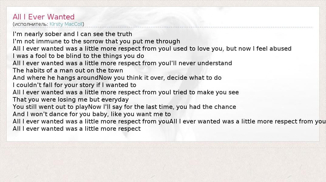 All I ever wanted was a little more respect from youAll I ever wanted was a little more respect from you