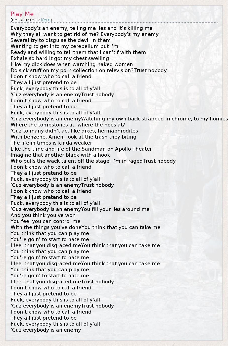 Это интересно:Korn (зачастую пишут «KoRn» или «KoЯn», повторяя логотип группы) — ню-метал-группа из Бейкерсфилд, Калифорния, США.Фактически они являются основателями жанра ню-метал. Вместе с Deftones, Korn заложили основы музыки, являющейся смесью гранжа и грув-метала, к которым зачастую добавлялся фанк, и хип-хоп читка. После того, как по всему миру было продано более 3 миллионов копий... продолжение
