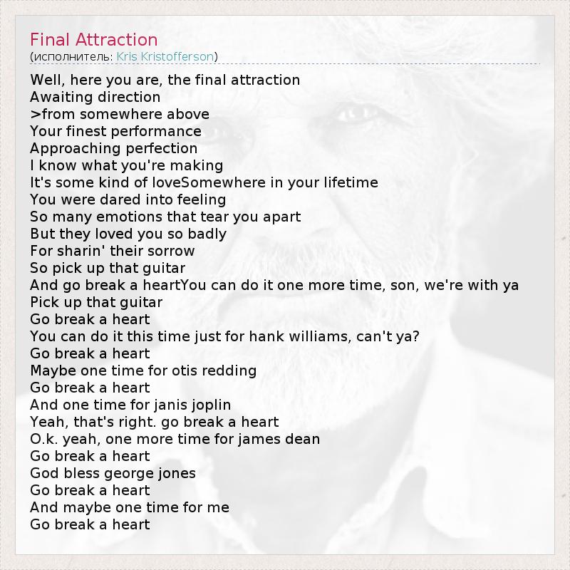 А как ты думаешь, о чем песня "Final Attraction" ?