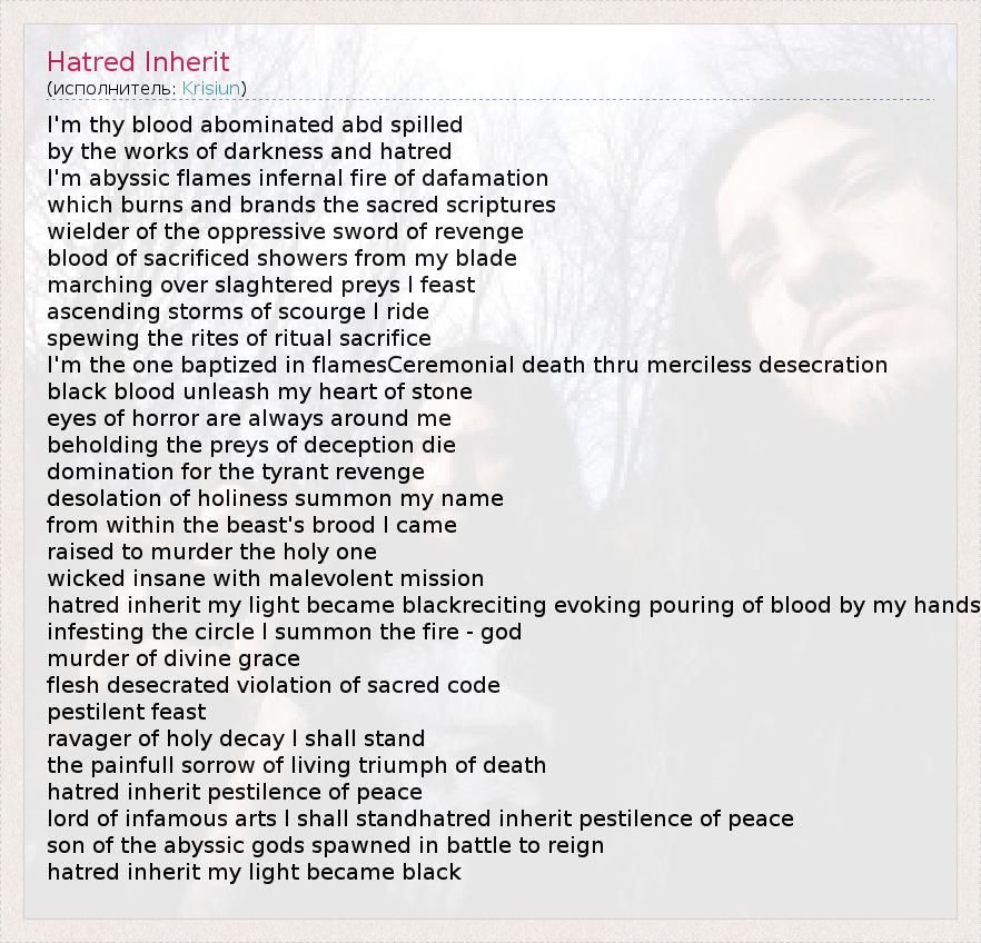А как ты думаешь, о чем песня "Hatred Inherit" ?