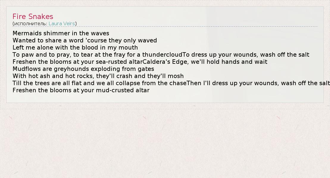 А как ты думаешь, о чем песня "Fire Snakes" ?