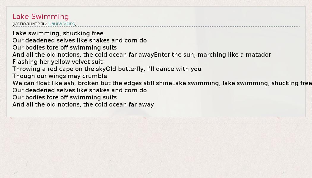 А как ты думаешь, о чем песня "Lake Swimming" ?