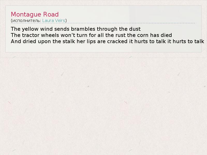 А как ты думаешь, о чем песня "Montague Road" ?