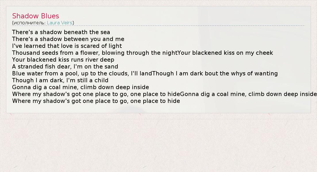 А как ты думаешь, о чем песня "Shadow Blues" ?