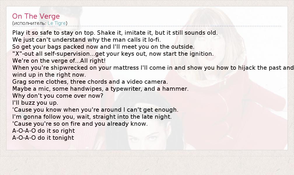 Это интересно:В ответ на часто задаваемые вопросы о Riot Grrrl: «Что это было? Что с ним случилось? Далеко ли они с ним продвинулись?» - Kathleen Hanna, Johanna Fateman and J. D. Samson из Le Tigre, скорее всего, пожмут плечами, пытаясь вспомнить и начать с того места, где остановились в своих продолжительных дискуссиях о еще незаконченном концептуальном арт-проекте Riot Grrrl: the remixes. Идея сделать из Riot Grrrl и Queercore популярную танцевальную... продолжение