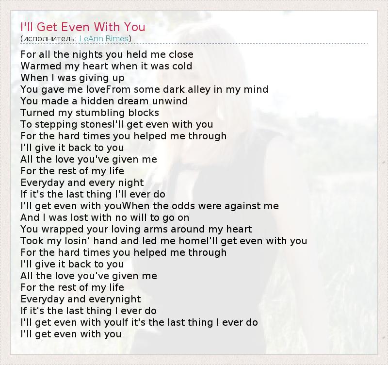 I'll get even with youIf it's the last thing I ever do