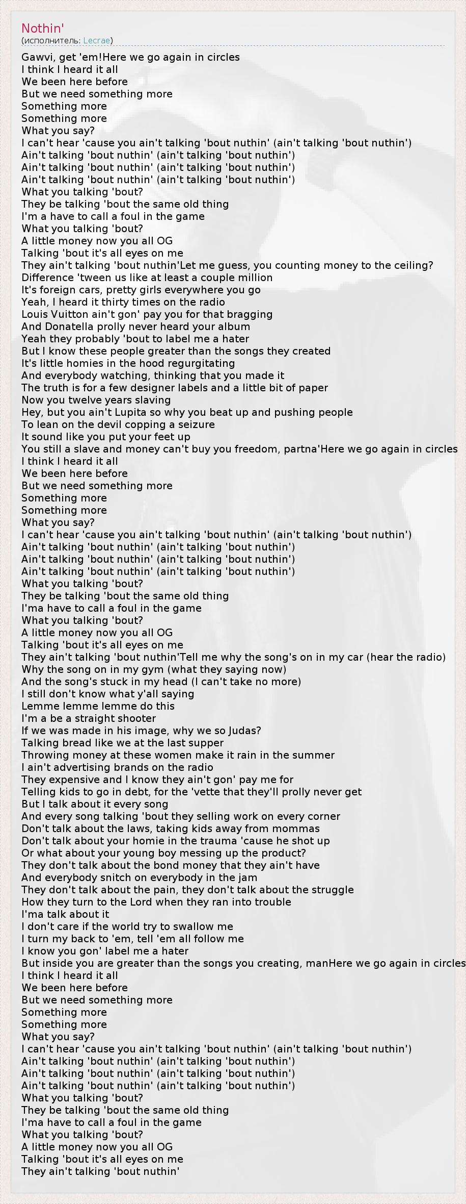 Ain't talking 'bout nuthin' (ain't talking 'bout nuthin')