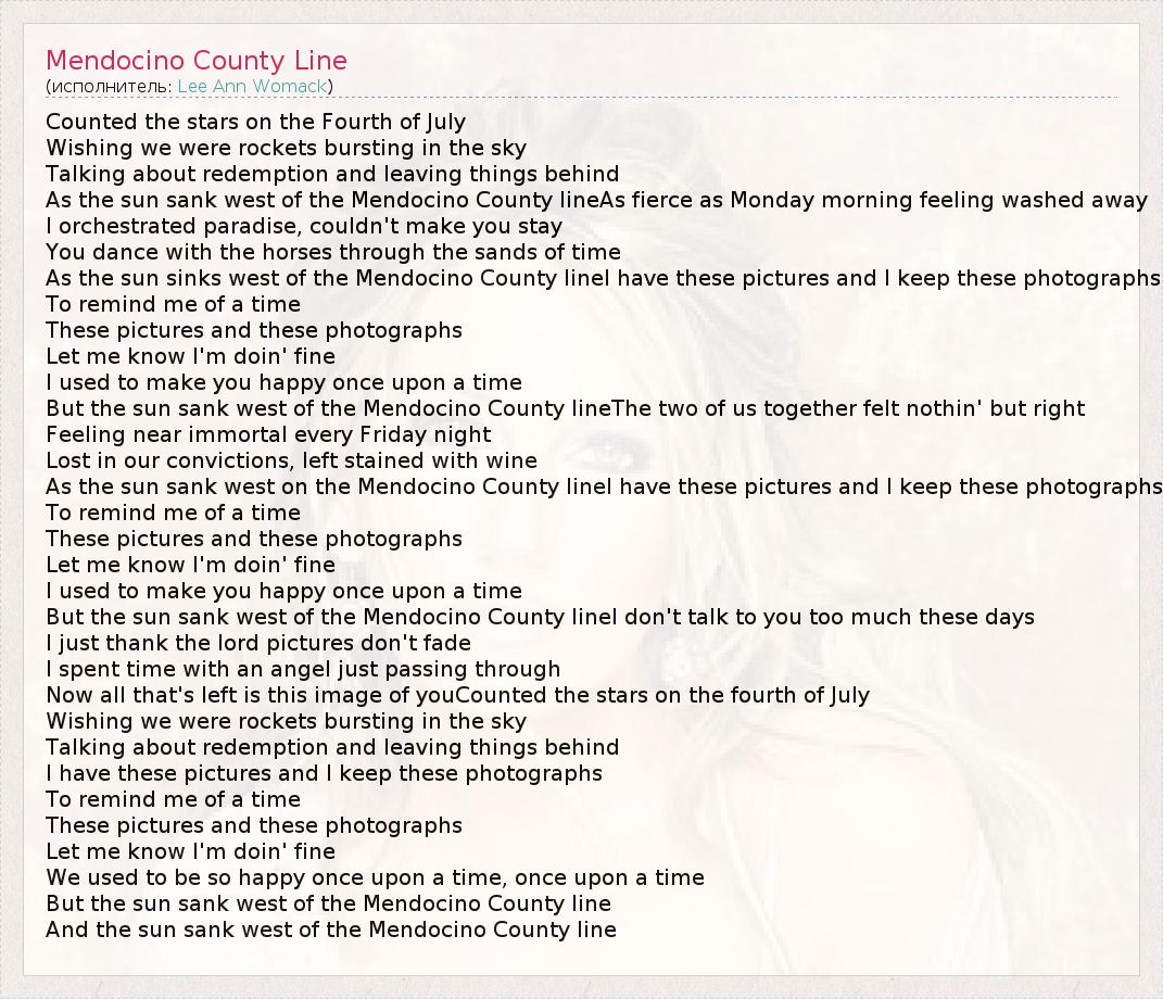 А как ты думаешь, о чем песня "Mendocino County Line" ?