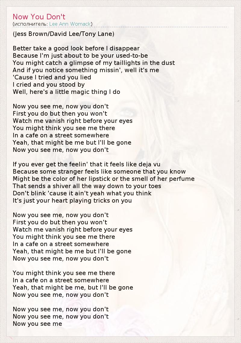 А как ты думаешь, о чем песня "Now You Don't" ?