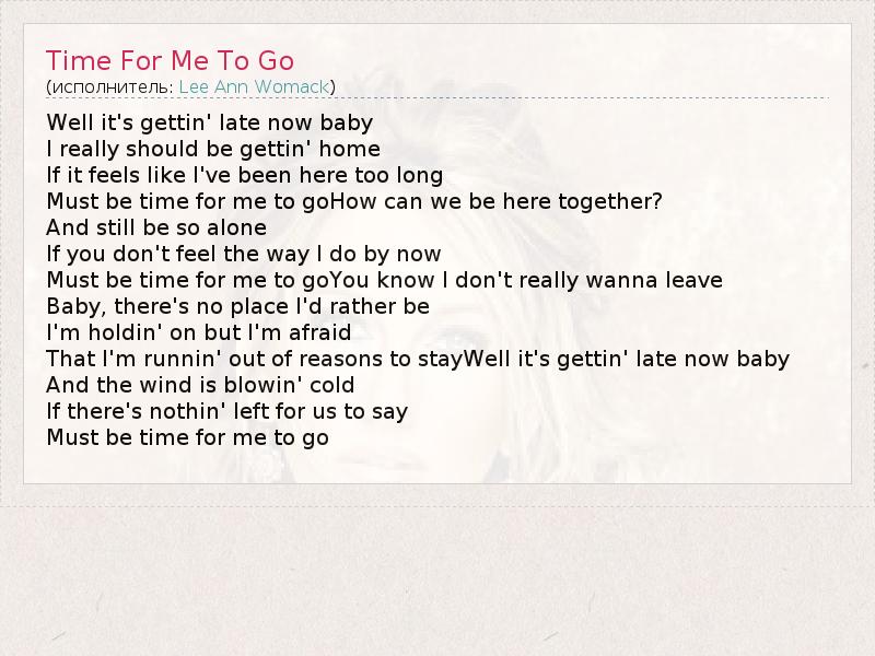 А как ты думаешь, о чем песня "Time For Me To Go" ?