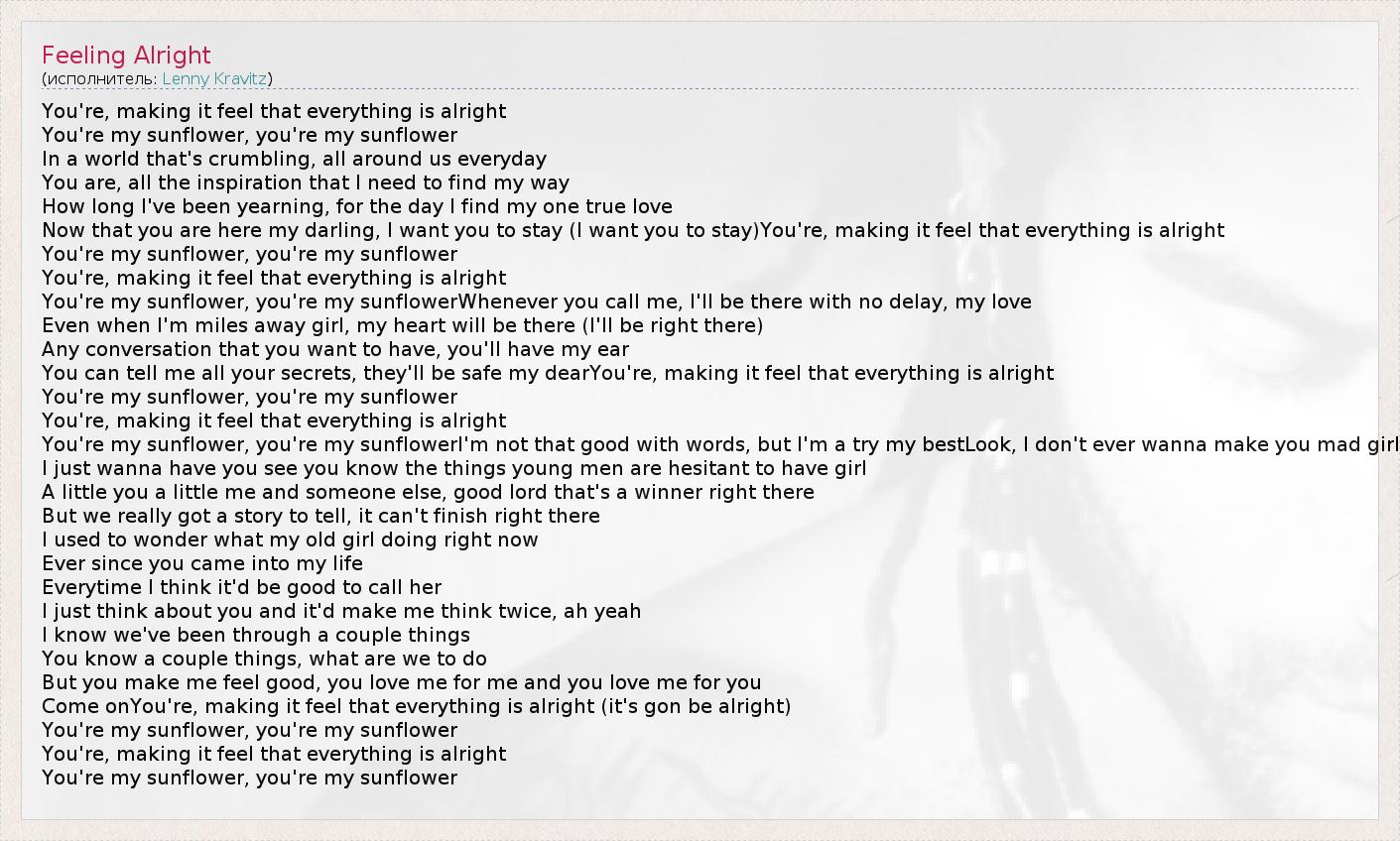 А как ты думаешь, о чем песня "Feeling Alright" ?