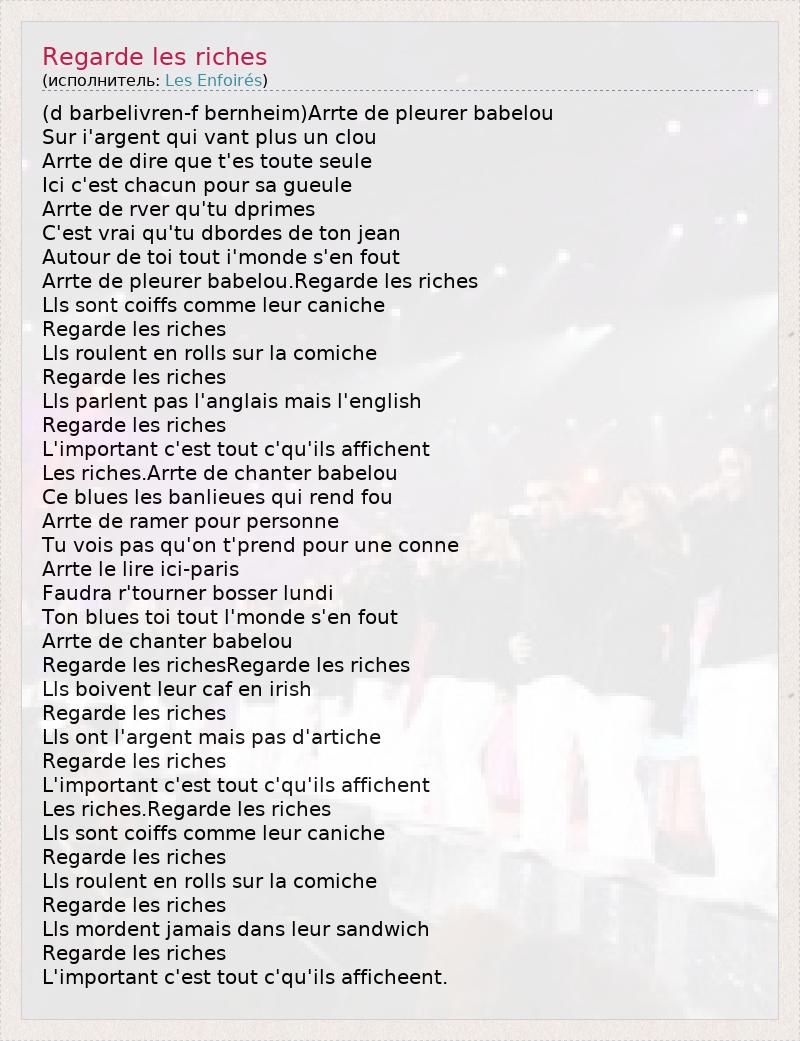 А как ты думаешь, о чем песня "Regarde les riches" ?