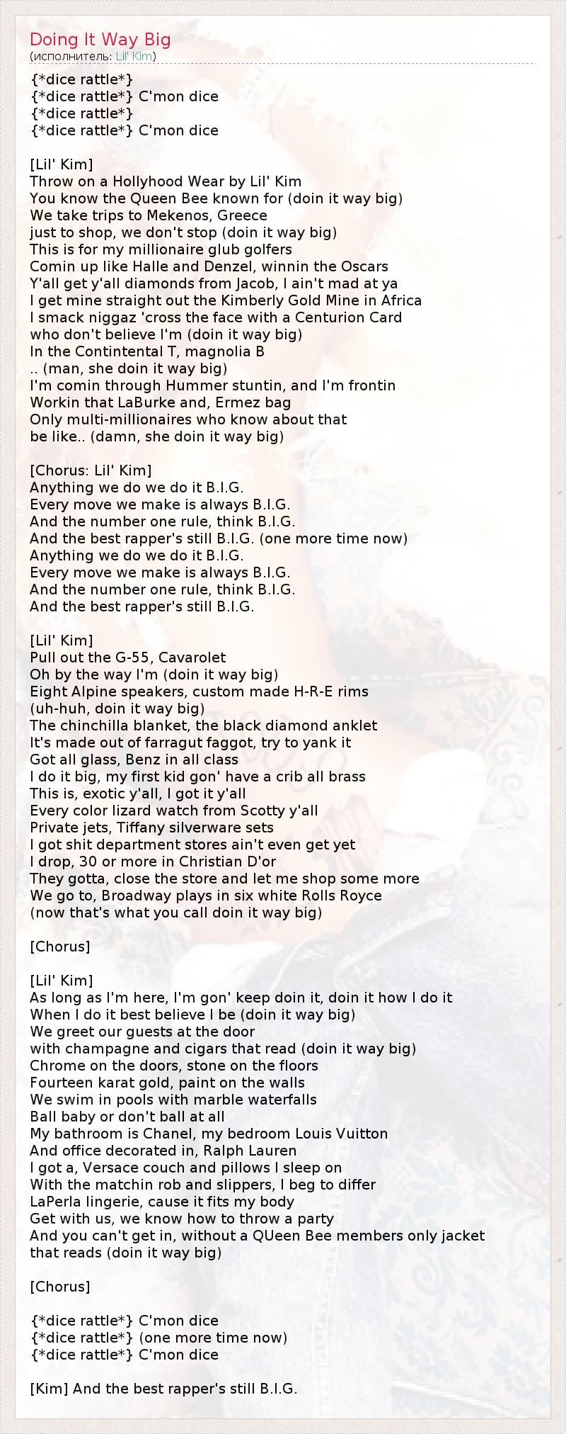 А как ты думаешь, о чем песня "Doing It Way Big" ?