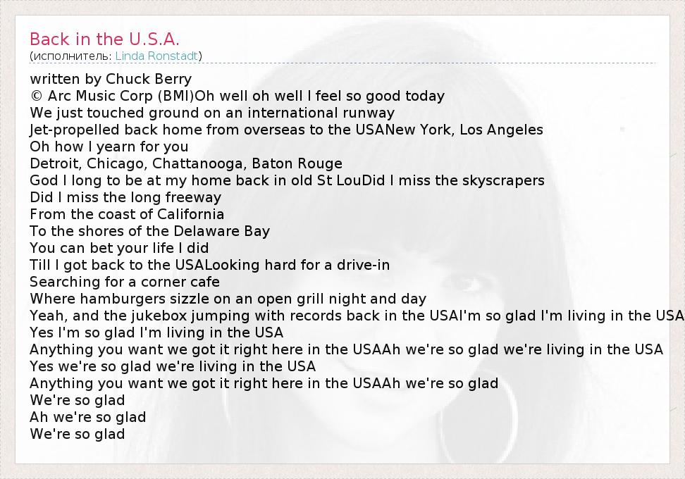 А как ты думаешь, о чем песня "Back in the U.S.A." ?
