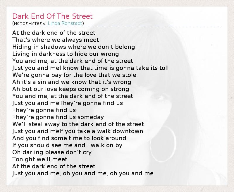 А как ты думаешь, о чем песня "Dark End Of The Street" ?