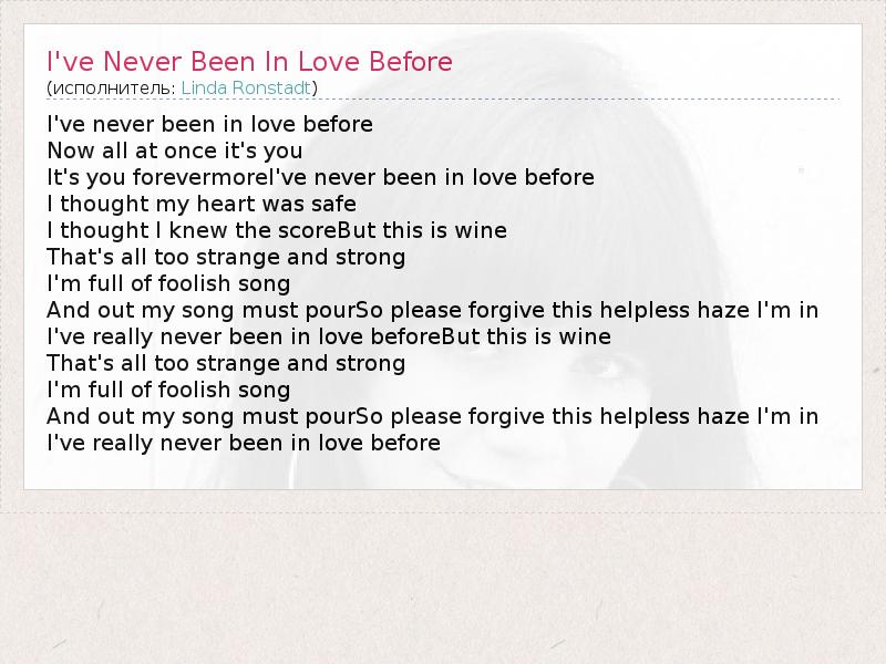 А как ты думаешь, о чем песня "I've Never Been In Love Before" ?