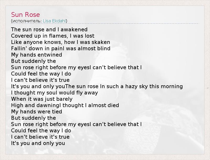А как ты думаешь, о чем песня "Sun Rose" ?