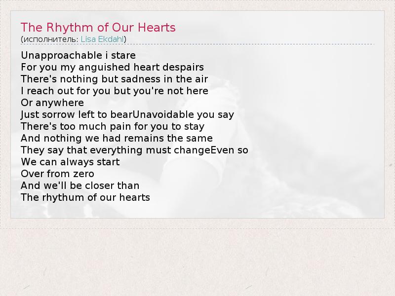 А как ты думаешь, о чем песня "The Rhythm of Our Hearts" ?