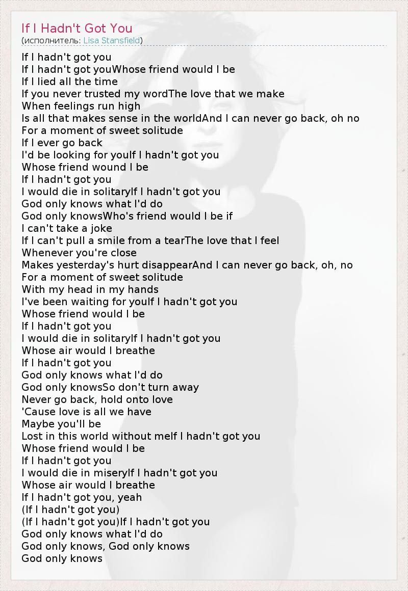 А как ты думаешь, о чем песня "If I Hadn't Got You" ?