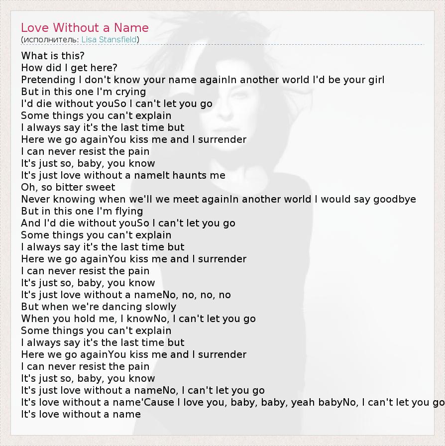 А как ты думаешь, о чем песня "Love Without a Name" ?