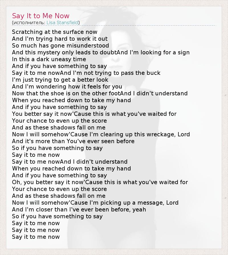 А как ты думаешь, о чем песня "Say It to Me Now" ?