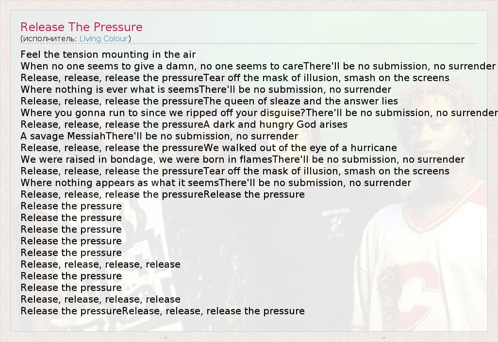 А как ты думаешь, о чем песня "Release The Pressure" ?