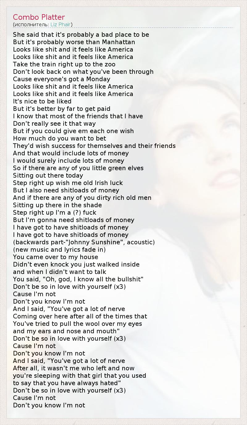 А как ты думаешь, о чем песня "Combo Platter" ?
