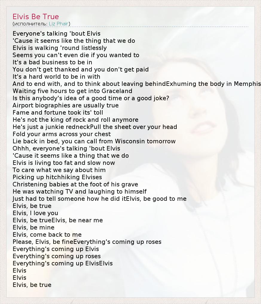 А как ты думаешь, о чем песня "Elvis Be True" ?