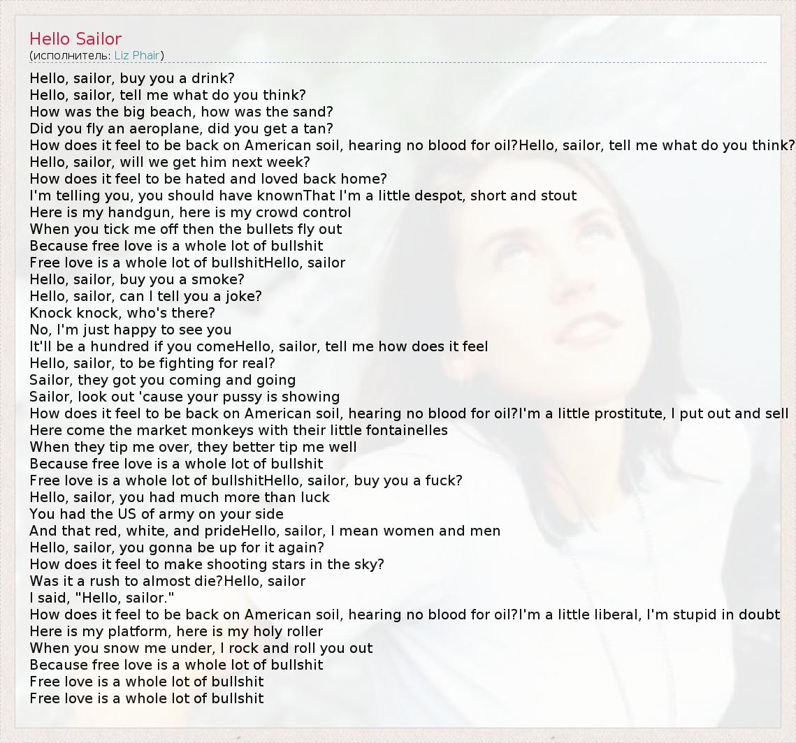 А как ты думаешь, о чем песня "Hello Sailor" ?