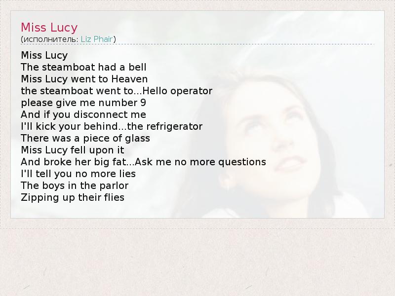 А как ты думаешь, о чем песня "Miss Lucy" ?
