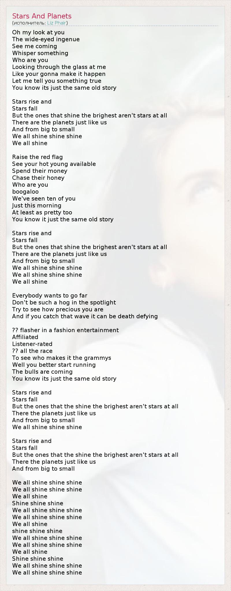 А как ты думаешь, о чем песня "Stars And Planets" ?